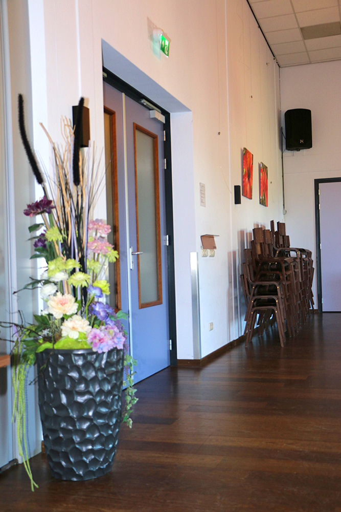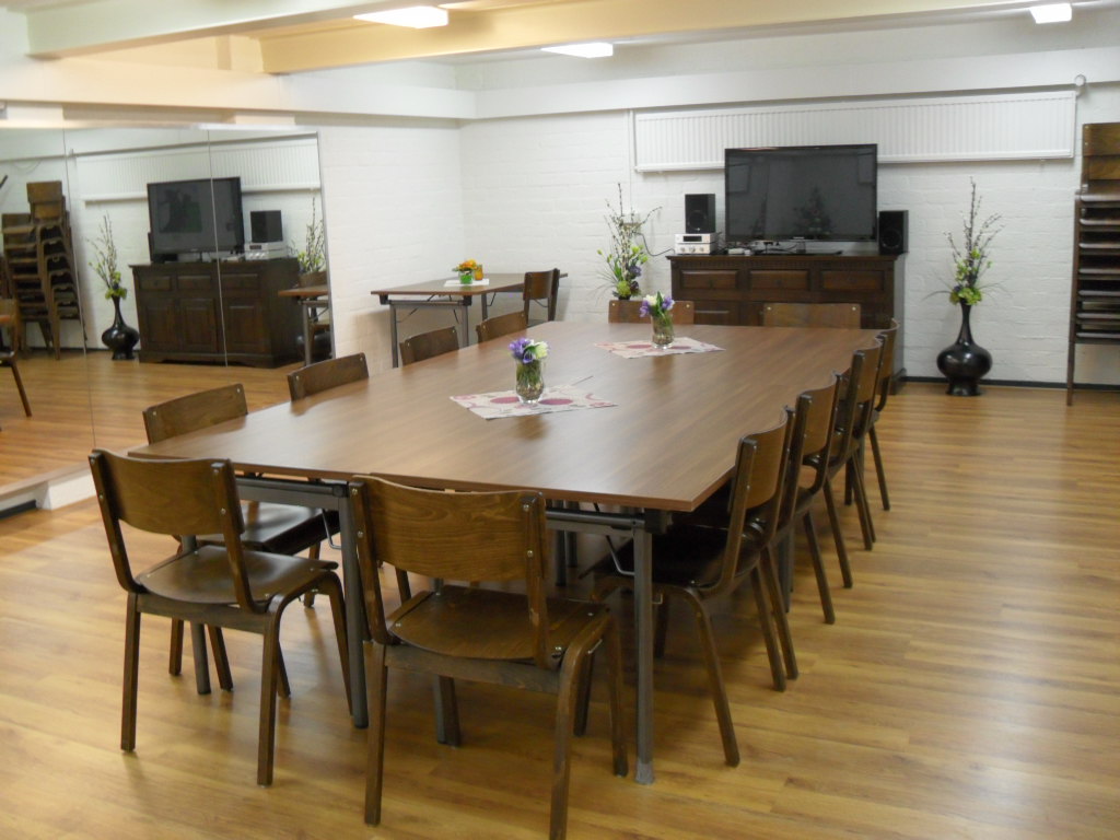 Deze ruimte is gelegen in de benedenverdieping van het gebouw. Hij wordt o.a. gebruikt voor yoga, showdansen, vergaderingen en presentaties. U kunt hier ongestoord u bijeenkomst houden. De ruimte is geschikt voor maximaal 20 personen. De ruimte is voorzien van een geluidinstallatie en breedbeeld televisie, waar u ook uw presentaties op kunt houden.