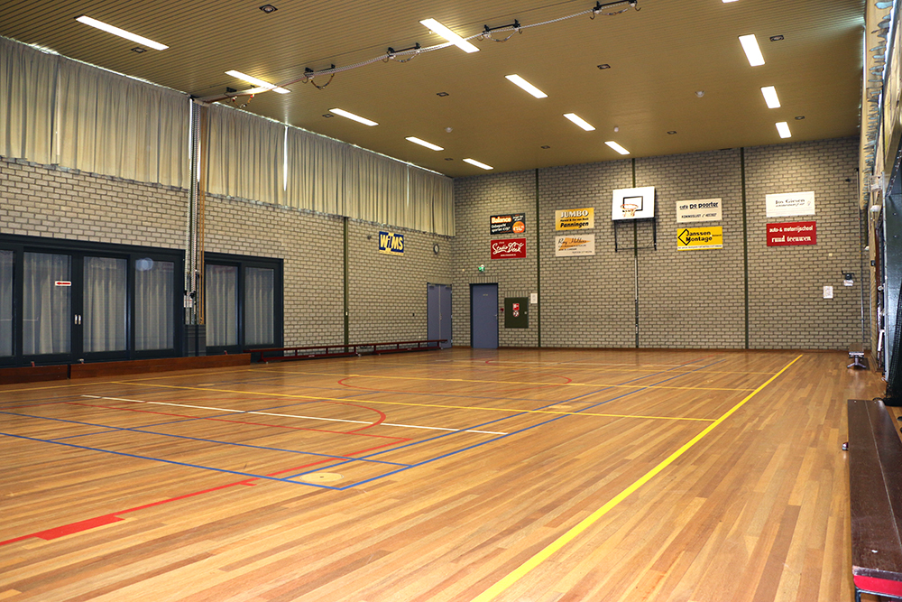De gymzaal / RABO zaal wordt gesponsord door diverse ondernemers en de Rabobank. De gymzaal kunt u ook huren. Dit kan voor diverse sporten zoals, tafeltennis, volleybal, basketbal, badminton enzovoort. Dat kan per uur, dagdeel of hele dagen. Daarnaast is de gymzaal buiten sport- en schooluren ook beschikbaar voor andere activiteiten. U kunt hier terecht met 90 tot 120 personen. De gymzaal is middels schuifpuien verbonden met de bar. Eventuele bezoekers kunnen vanuit de bar de activiteiten in de gymzaal volgen.