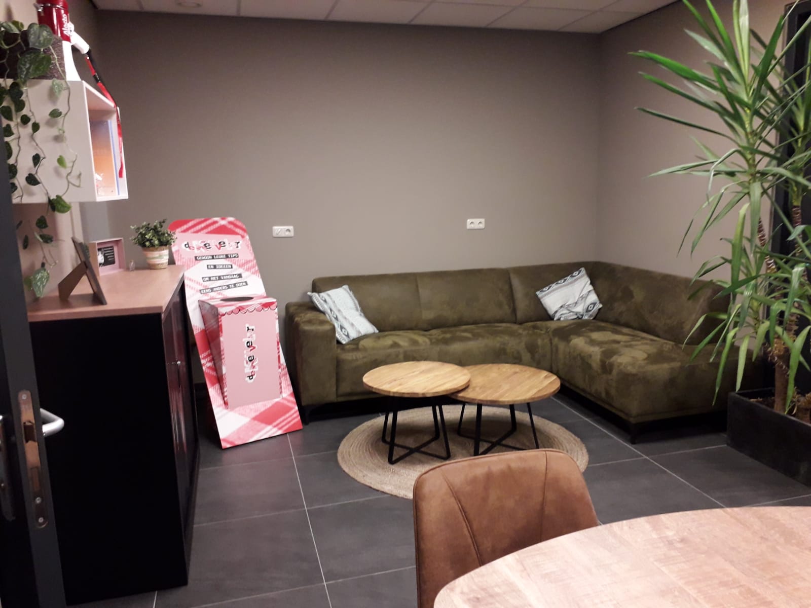 In deze ruimte staat een zitje waar u gezellig een informeel gesprek kunt houden. De ramen kunnen geblindeerd worden. Verder is een kleine vergadertafel.